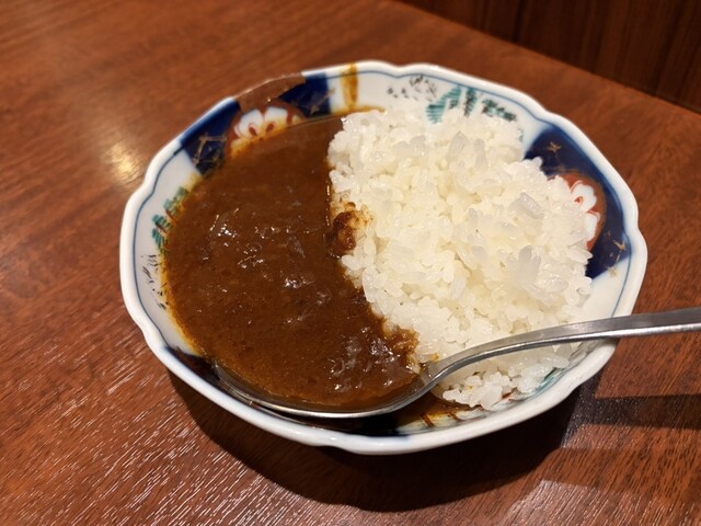 コースの最初のキムチは甘味のある辛さ控えめの優しい味わい。次のおでんには小さめながら厚切りのヒレ肉が入っています♪ その他具材の大根やネギなどお昼から煮込んでいるそうで染み染みで最高です。