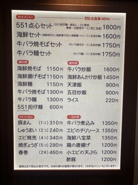 万博帰りに立ち寄ったこともあり、かなりお得に感じてしまった。お土産の551はどこも長蛇の列なのにこの日に限ってか並ばずに入店。セットにして551の味を堪能しました。テイクアウトも出来るっぽいのでここで食べてる際にお土産を準備してくれたらサイコーですね。