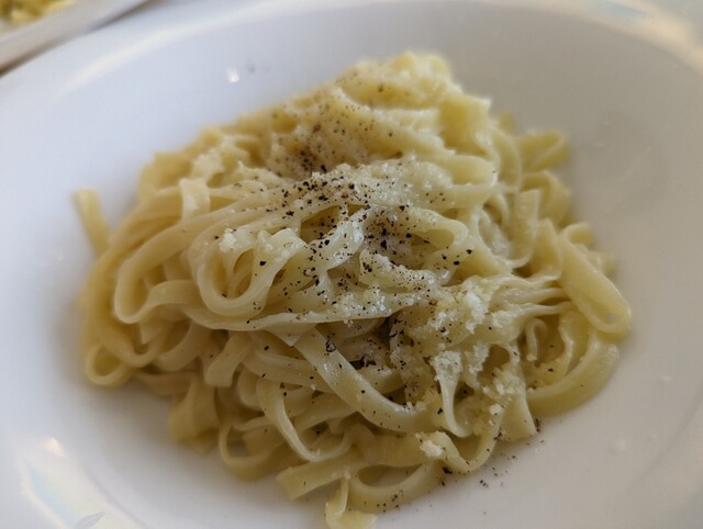 ランチで利用させていただきました。清潔感のあるお店です。初めてのつけ麺タイプのパスタ。薄めの平麺。最初はソースにつけずに麺だけでいただきます。美味しい!ソース不要。モチモチ。でもせっかくなのでソースにつけていただくと、これもまた美味い!麺が少なく感じるかもしれないけど、おかわりし放題のフォカッチャがついています。これもソースにつけていただくと美味いのです。どうしても麺をたくさん食べたい方は最初に増量注文できますし、あとから麺だけ追加で注文することもできます。車で行く場合は近くのコインパーキングを利用しましょう。今回は100円で利用できました。