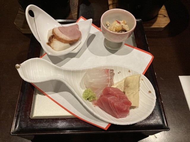 お刺身、肉、お惣菜類、スープ、