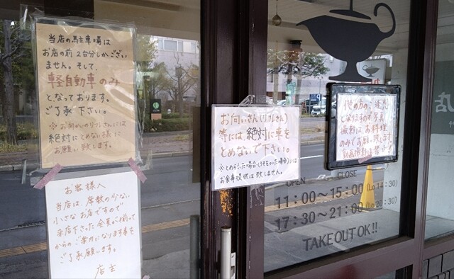 お店の入口そばにある注意書き