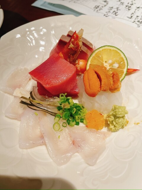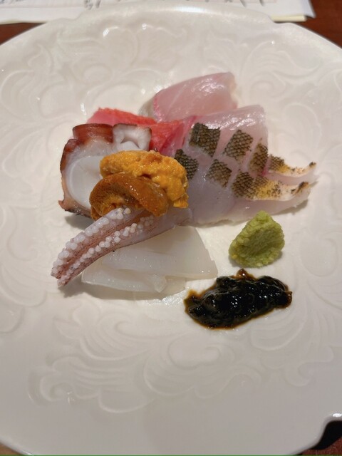 ・さしもり(天然真鯛、縞鯵、こち(湯引き)、蒸しタコ、ヤリイカ、ウニ、カツオ藁焼き)…これは必注。鮮度が高く、高級な食材もふんだん。一人ずつ出していただけるのもありがたい。
