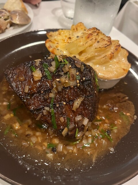 …骨付きで豪快な香草焼き。パン粉のカリッとした食感と香草の風味、しっとりとした仔羊がたまらない。じゃがいももゴロゴロ入っていてこれだけでお腹いっぱい。