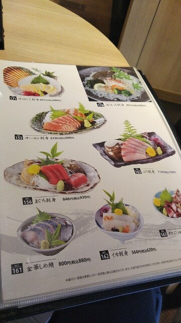 蟹の刺身をはじめとして、まぐろ、えび、いか、ほたての刺身、天ぷら、茶碗蒸し、煮物、前菜小鉢三点、お吸い物、サラダがついてなんと1300円!