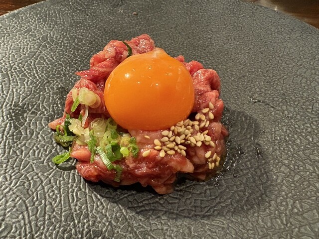 牛ユッケは卵黄の濃さと肉の甘みが見事に調和。過度な味付けをせず、素材の良さで勝負しているのが好印象でした。