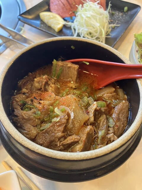 注文は定番の厚切り牛タンをはじめ、キムチと牛すじの煮込みが特にお気に入り。タンは肉厚でジューシー、歯ごたえと旨味がしっかり感じられて、他店の薄切りタンとはひと味違います。キムチは隣席のお客さんも「ここは本当にうまい」と話すほどの絶品で、辛さと酸味のバランスが抜群です。牛すじの煮込みはトロットロで柔らかく、口の中でとけるようでした。