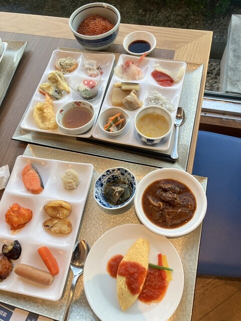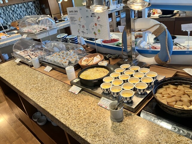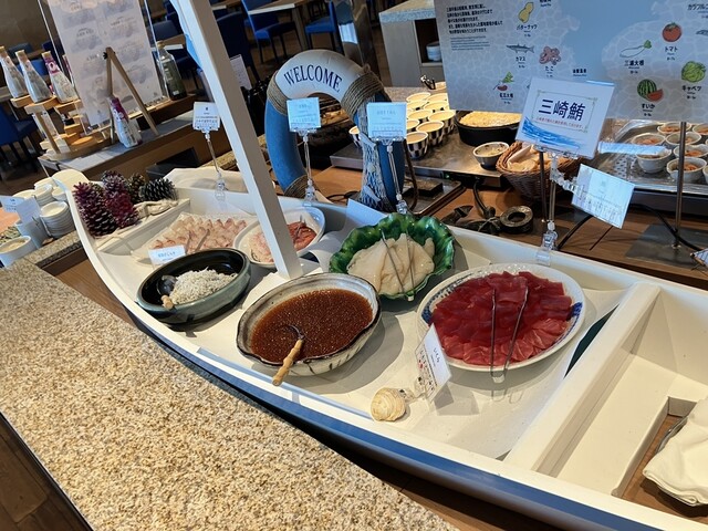 翌朝のビュッフェも期待以上。大きな窓から朝の海を眺めながら、好きな料理を自由に取る贅沢な朝。特に目当てだった「いくらの盛り放題」は夢のようで、しっかり丼にして堪能。地元の新鮮な魚介や三浦野菜、焼き立てのパンまで、どれも美味しくて朝から幸せいっぱい。刺身類も種類豊富で、素材の良さが際立っていました。