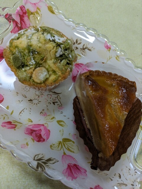 ケーキイラストの可愛いトートバッグにお菓子と紅茶達。