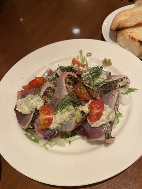 ・高知産炙り鰹タタキカルパッチョ→炙られた新鮮な鰹、そしてディルとタルタルソースの組合せが美味しい!