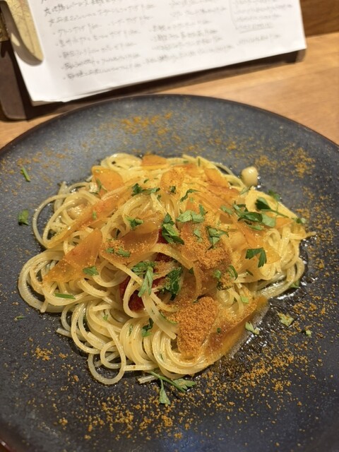 サルデーニャ産ボッタルガのアリオオーリオペペロンチーノをいただきましたが、どれも絶品!