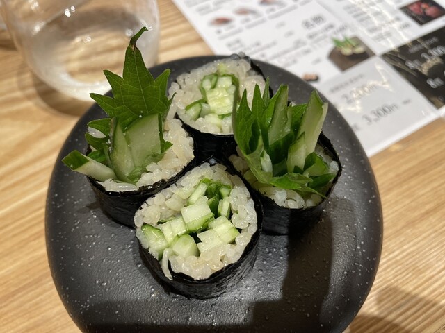 つぶ貝旨し!から始まってカンパチをいただいたらメッチャ旨くてカンパチおかわりしたら味付けを変えてくれて2度旨い!!あと、イワシが脂のっててトロトロでとろけた〜!最後に名物、塩かっぱ巻きって書いてあったから思わず注文、今まで食ったかっぱ巻きの中でナンバーワン!で、最後に(2回目の最後笑)玉ねぎトロ手巻きを注文すると「海ぶどう付きバージョンもありますよ」って言うから、海ぶどう付きにしてプチプチでトロトロで大満足!男前鮓楽しかった〜