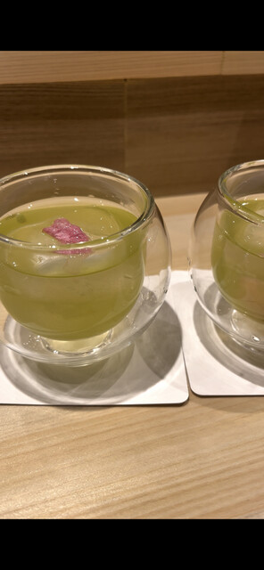 嬉野玉緑茶に酢橘と桜の気配を溶かし込んだものは、白身や光り物との相性が良い。