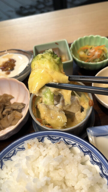 竹取物語の朝食は、目覚めた体と心を静かに呼び覚ます、秩父の朝そのもののような一膳だ。土鍋で炊かれたご飯は、粒立ちふっくらでほのかな甘みを帯び、湯気とともに米の香りが部屋に広がる。汁物の澄んだ旨味が口中をすっと整え、焼き虹鱒は自家製味噌の深みと脂の甘みが重なり、噛むたびにほのかな山の香りを漂わせる。きのこのマリネやブロッコリーと鶏のグラタン、かぼちゃのサラダなど、色とりどりの小皿がテーブルに並び、それぞれが控えめながら確かな存在感を放つ。だし巻き玉子はふわりと空気を含み、しゃくし菜コロッケやピリ辛こんにゃくはアクセントとして食欲を引き締める。手作りピクルスや小松菜のピーナッツ和えのさっぱり感が後味を爽やかに整え、カスピ海ヨーグルトが最後に優しく口を満たす。