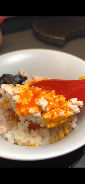ふんわりと蒸されたご飯に、たっぷりのそぼろが広がる。奥久慈の玉子を割れば、濃厚な黄身がとろりと絡み、甘辛いそぼろと混ざり合う。口に含むたび、温かさと旨味がじんわりと広がり、〆としての満足感を静かに、しかし確実に刻み込む一品だ