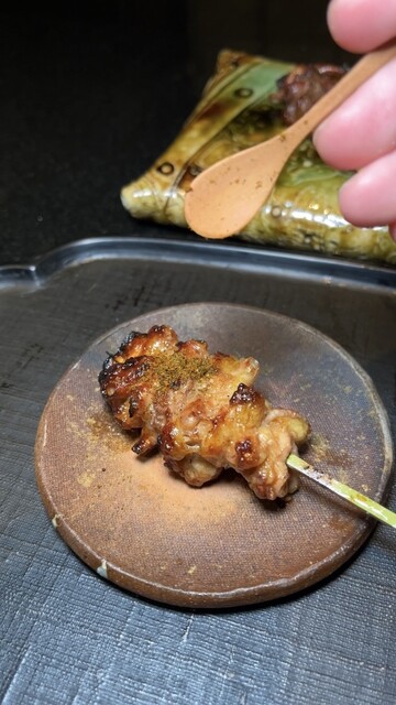 皮は、炭の香りを纏った薄膜が軽やかな音を立てて弾け、すぐに濃密な旨味が追いかけてくる。脂は決して重くなく、むしろ透明な甘みとして舌に落ちる。香ばしさの頂点をひと口に凝縮したような、技の冴えが光る一串。