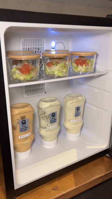 そして特筆すべきは、ソースを自由に選べておかわりも可能なサラダの存在だ。yellowソースは、はちみつの柔らかな甘みとレモンの酸味が軽快で、食事のリズムを整える序章として心地よい。greenソースは、爽やかなバジルの香りがパティの肉感と共鳴し、バーガーとの距離を一気に縮める。redソースは、チリソースとマヨネーズのコクがチーズと深く絡み合い、食後半に欲しくなる背徳的な一手だ。サラダがおかわりできる理由が、単なるサービスではなく、味の展開を楽しませるための仕掛けだと気づく頃には、皿は自然と空いている。満足感とは、量ではなく設計なのだと教えてくれる一皿である。