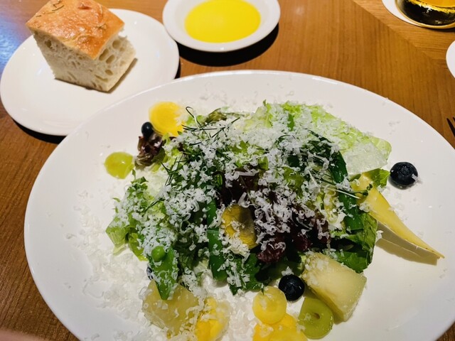 メロンなどフルーツをたくさん使った新鮮サラダの前菜が美しくおいしく、これからのディナーに期待値爆上がり