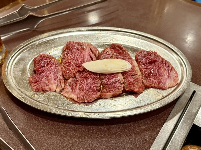 特選盛には、上カルビ、上ロース、上タンなどが約3〜4人前ほど入っているそう。目の前に登場したお肉たちは美しい。光ってる。以前より少し薄切りになっていた気がしますが、その分やわらかくて、口に入れるとすっと溶けるよう…!タンも驚くほどやわらかくてびっくり。