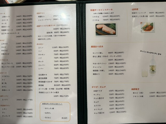 帰るときに、夜ランチなるものがあることに気づきました。カルビランチで税込み2,200円。これは気軽に来れそうだ。今度は夜ランチでお伺いします♪