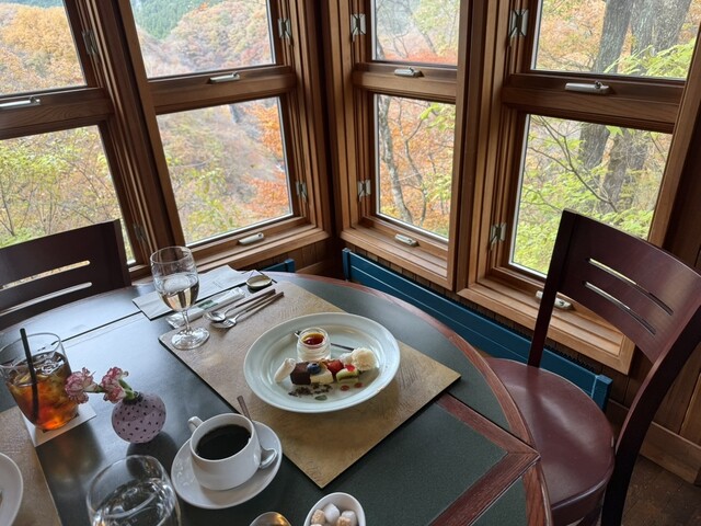 紅葉を眺めながらゆったり味わうデザートは格別でした。