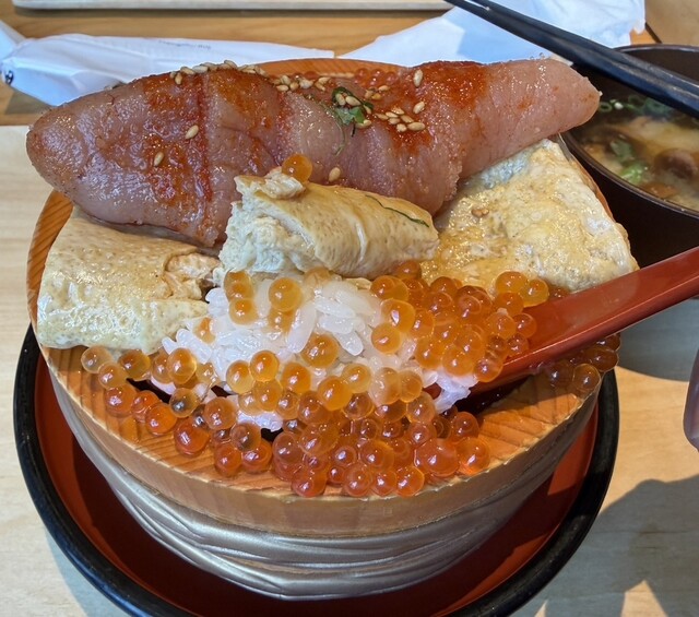 もちろんオーダーはイチオシ朝食の明太いくら玉子焼き丼です!!!