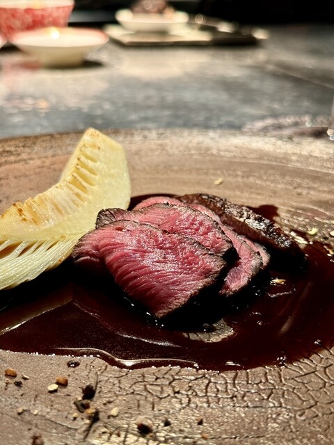 メインの肉料理は、いぶさな牛。幻の竹の谷蔓牛と黒毛和牛の子どもですね。