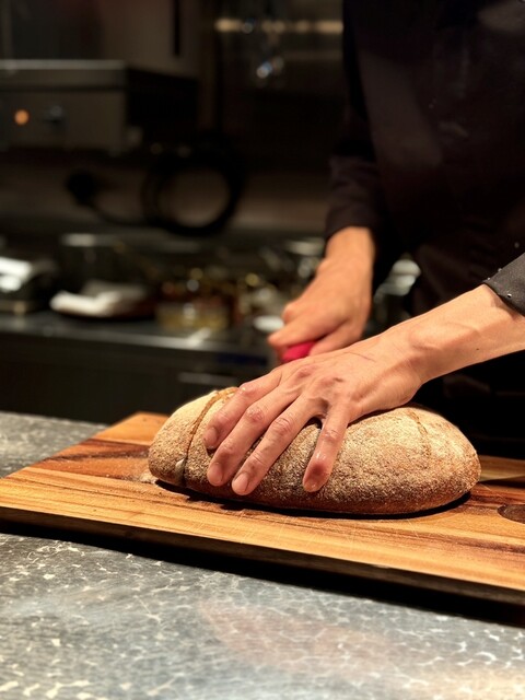 これをコース開始時から炭火で表面を焼いて余熱で中までしっとりに。