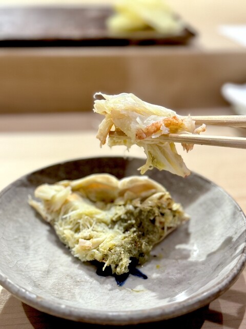 コースに入っていて嬉しすぎる大ズワイガニ蒸しは身も味噌もぎっしり。たっぷりの旨みと甘みが爆発する蟹。おいしすぎます。