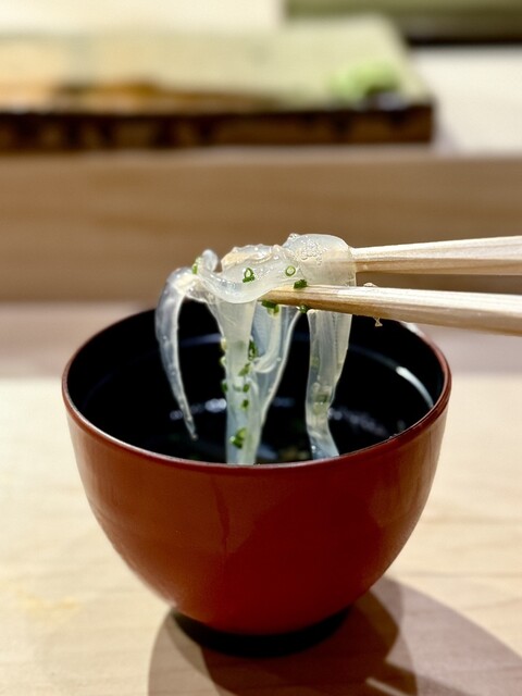 ▷ホタルイカ/しじみ汁/刺身(黒ムツ・アラ)