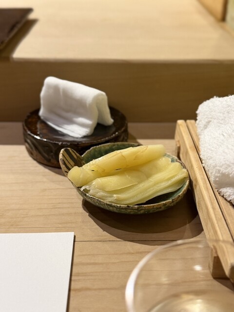 今回もおまかせ33,000円+日本酒おまかせ。初めて大将でなくお弟子さんが握り手でしたが、サービス面も含めて満足できました。