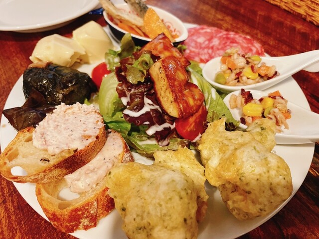 オードブルは7種類のお料理がワンプレートにぎっしりのっていて、真ん中にはフォアグラが!!