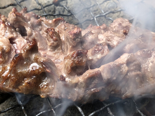 もちろん解体もしてくれます。タン元とタン中は厚切りと薄切りに。切り方で食べた時の印象が変わるのが楽しいのです。今回の個体は脂多め。ツルツルした口当たりのタンでした。いやあ実に美味しい。通常タン先はスープにしますが、今回の個体はキメが細かく焼けるというお店の人のアドバイスもあって焼肉にしてみました。歯応えがあって淡白な味わい。これはビールに合います。