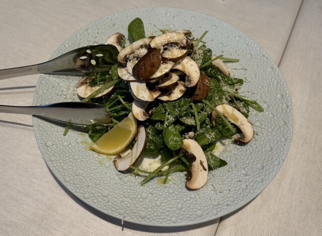 こちらは絶品でした!フレッシュマッシュルーム、ルッコラ共にとても柔らかく、香りも非常に良かったです。単体でもどちらも美味しいですが、その組み合わせも最高でした。かなりおすすめのサラダです。ルッコラが苦手でなければぜひ食べていただきたい。