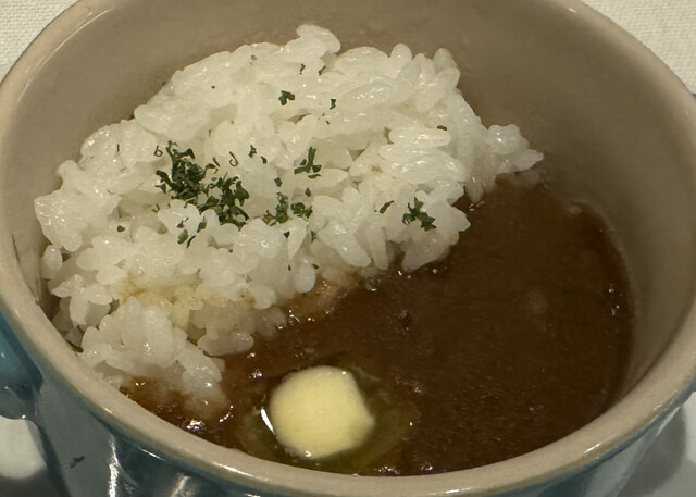 牛肉の旨みの溶け出した、ステーキ屋さんのカレーでした。最後の〆にちょうどいいサイズで、こちらもとても美味しくいただきました。