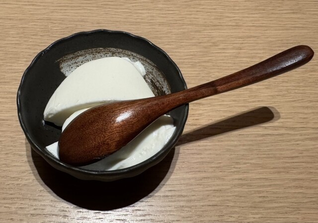 日本酒の香り、味わいがしっかりと感じられる、なめらかな口どけのデザートでした。甘さ控えめで、少し大人なブランマンジェでした。