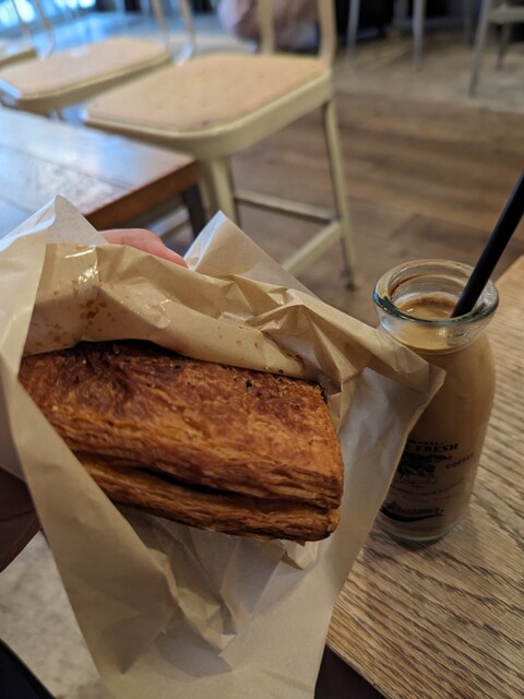 ハムデニッシュ¥480 ストリーマーコーヒー牛乳¥680