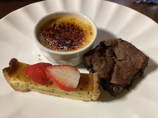 えごまのタルト、安納芋クリームブリュレ、