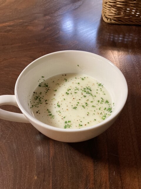 スープ。さつまいものスープ。甘くて優しいお味。塩味もあり甘さが引き立っています。