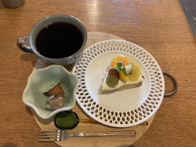 ケーキはフルーツタルト。コーヒー。