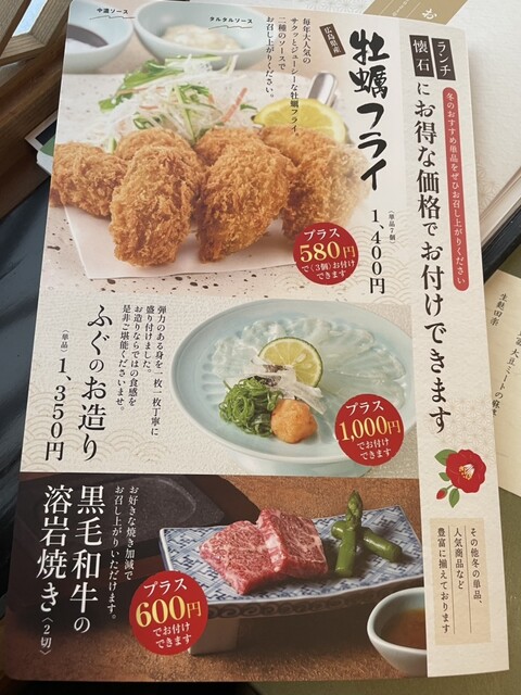 以上のコースメニューだけでもかなりお腹いっぱいでしたが、単品で「カキフライ3個」(コースにプラスで580円)と「嶺岡豆腐」(270円)も追加。かなり満腹で大満足。