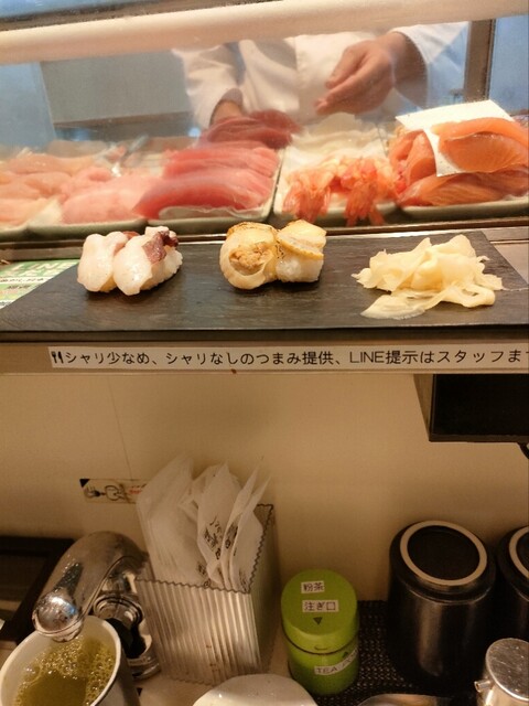 池袋にきたときは、まずこちらに立ち寄ります。立ち食いのお寿司やさんです。。握ってすぐに食べられるので美味しいし新鮮です。。帆立のバター醤油とか蛸も生や焼いたもの、あじつけも、醤油、生姜にポン酢つか選べます。最近はアイパッドからのセルフオーダーに変わりました。炙ったりするメニューも増えているので色んな食べ方楽しめます。エステ帰りの昼間、ランチとして利用しています。。