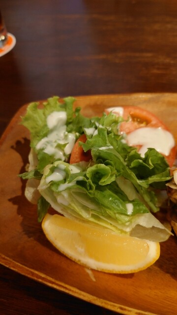 バーガーの横には和野菜のグリーンサラダ(水菜サラダ)がついてます。
