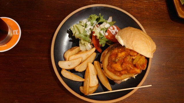秋茄子グリルのハンバーガー、大葉芳る自家製唐辛子味噌仕立てですが、味噌ダレが味噌田楽のタレのような甘味噌でハンバーガーに合うんかいと思いきや、ピリリと辛い唐辛子と相まって、とても美味しく頂きました。