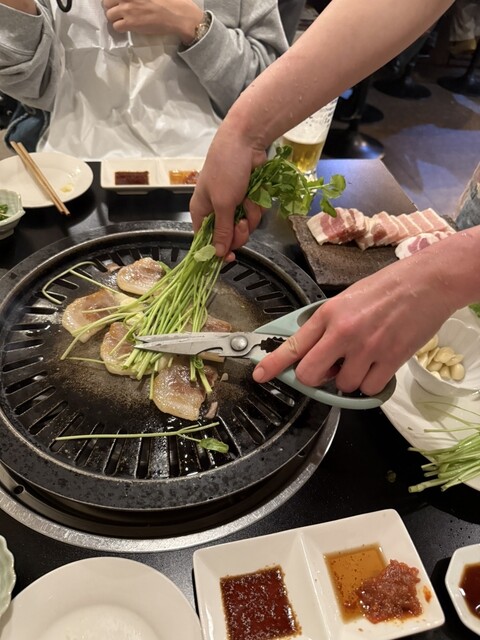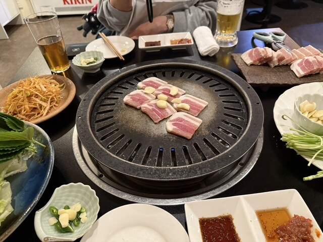 友人に連れられて何度か訪れているお店。ママさんがとても印象的な方です☆ここのサムギョプサルは本格的で他のお店では味わえない美味しさです。お店の方がお肉を焼いて下さって、新鮮な野菜と一緒に頂きます。ゴマの葉が今迄本当に苦手だったのですが、ここのは癖が無く新鮮で香り豊かなゴマの葉でサムギョプサル巻いて食べたら本当に美味しかった。嫌いな物を好きにさせてくれるお店は本当に素晴らしいお店です。友人はセリが好きみたいで2人で大絶賛でした。鳥の刺身などもその日の入荷で色々あり、色々な美味しい料理が味わえます。この日はせせりを頂きましたが本当に美味しかったです✨️他にも小鍋も頂きましたが美味しくてペロリ完食しました。また必ず行きたいと思うお店です。