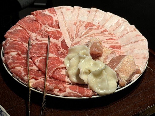 火鍋はカレー麻辣と白湯の二色鍋。どちらも薬膳の香りがきつすぎず、食べ進めるほどに旨みが増していく印象でした。特に肉の質が良く、薄切りでも臭みがなく、スープとの相性がとても良いです。きのこや薬味の種類も豊富で、体に染みる感じがあります。