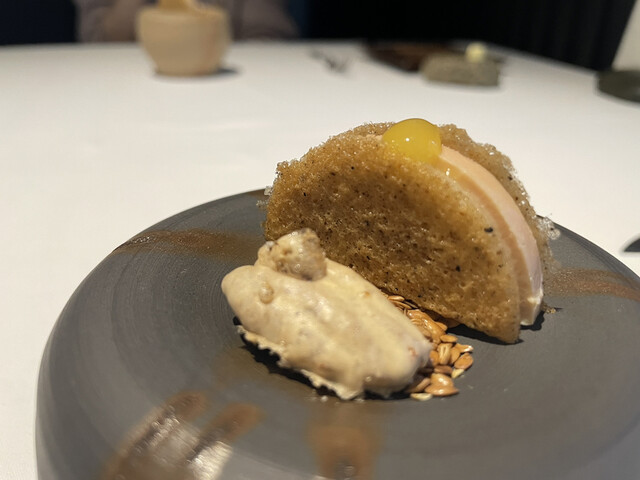 休憩のフォアグラサンド。前までと違ってサンドになってる!