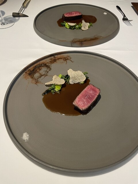 これ、美味しい!どタイプのお肉…柔らかさも焼き加減も絶妙。トリュフ塩やサマートリュフと一緒に。