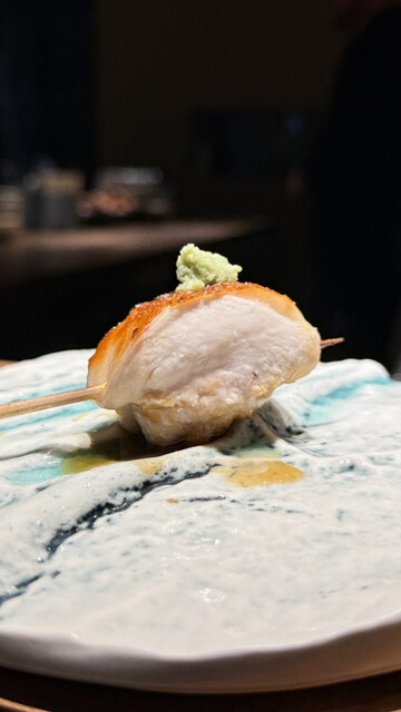 こちらの焼き鳥は、静岡・伊豆市の「天城軍鶏」を使用。外はパリッと、噛むと中から力強い旨みが溢れるジューシーさを追求しているとのこと。特に印象的だったのは、入荷した鶏を1週間ほど寝かせてから焼くというこだわり。皮の旨味がぎゅっと凝縮され、香ばしさの奥に深いコクが感じられます。また、その日の状態で一番良い部位や焼き方を提供してくれるため、何度訪れても新しい発見があるのも魅力。