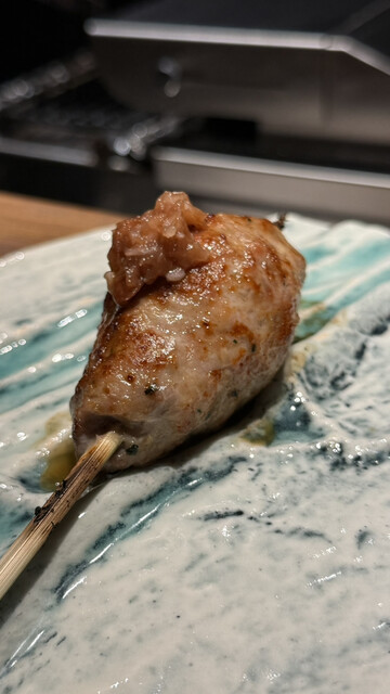 まずは看板のつくね。ふっくらジューシーで、旨みがギュッと詰まった肉感に加え、上にのる刻み梅肉が良いアクセント。続くソリレス、ハツなどの串も火入れが完璧で、皮目の香ばしさと身の弾力が立ち上がる一本一本が実に力強い。特にねぎまは火入れの妙が際立ち、噛むほどに甘みある脂が滲み出ます。