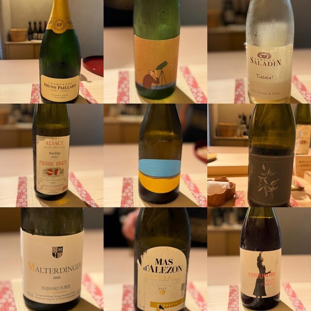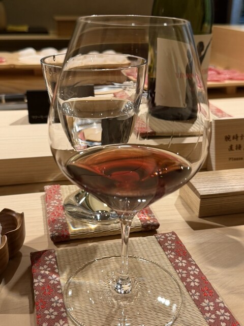 この日もいつも通りにソムリエ諸さんのワインペアリングをお願いし、全14杯を楽しむ贅沢な時間を過ごしました。ワインのセレクトは絶妙で、寿司やつまみとの相性が素晴らしく、一口ごとに新たな発見と感動がありました。たまに出てくる変態的なセレクトも最高でした。